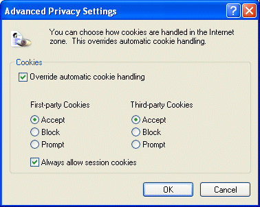 5. Check the Override Automatic Cookie Handling checkbox.